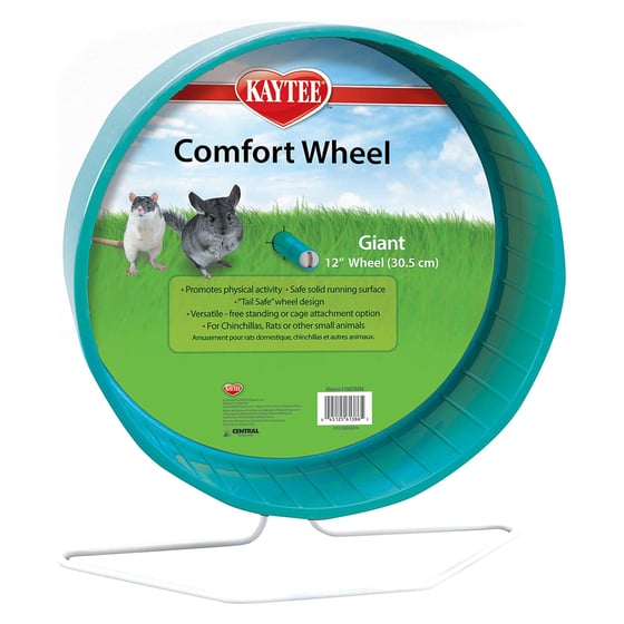Give your hamster, gerbil, or other small pet the gift of endless entertainment and exercise with this giant wheel. Watch them scurry and sprint, burning off excess energy and staying healthy and fit. The Kaytee Giant Wheel Comfort is a must-have for any small pet owner looking to provide the ultimate in playtime excitement. To keep your Comfort Wheel running quiet, place a few drops of vegetable oil on the wheel hub where the wheel spins.