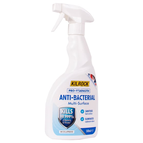 The pro strength anti bacterial multi surface spray from Kilrock will kill 99.