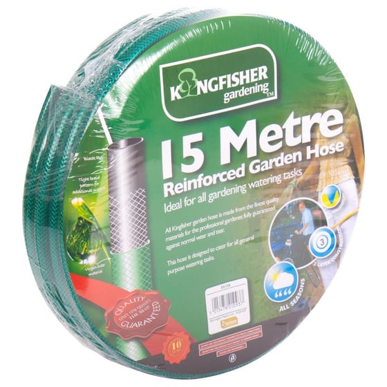 The Kingfisher Reinforced Gardening Hose Is A 15m Multipurpose 3 Layer Braided Garden Hose, Individually Shrink Wrapped With A Full Colour Label.