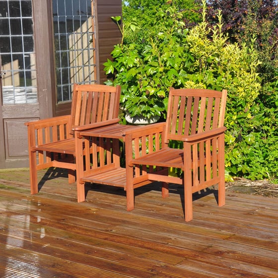 This beautiful Kingfisher Hardwood Love Seat combines two armchairs with a centre table, great for sitting out in the sunshine this summer.