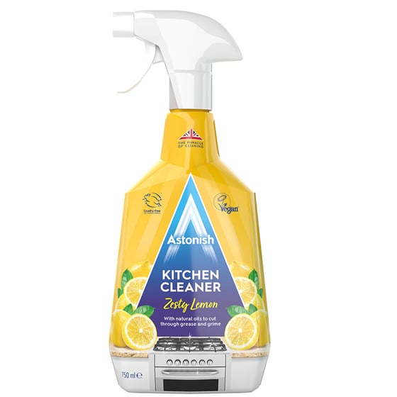 Astonish Kitchen Cleaner is uniquely formulated to remove kitchen grease and dirt quickly. It is suitable for work surfaces, tiles, sinks, cooker areas and cooker hoods. The easy spray bottle application and easy wipe make using this product effortless achieving a sparkling shine to your kitchen.