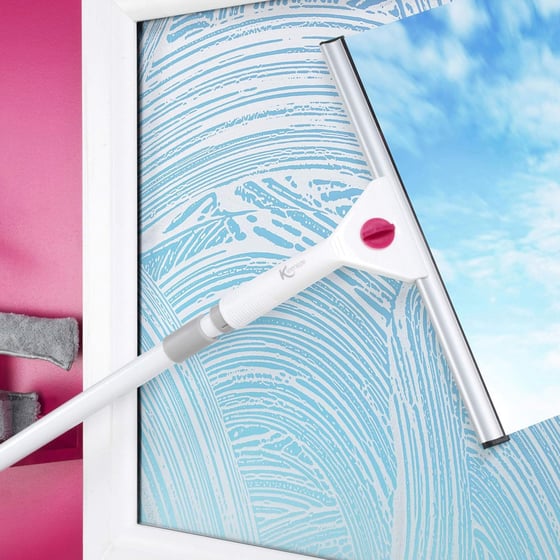 The cleaning set includes a ergonomic handle, two wipers and two cloths. The extendable, hard-wearing iron handle allows you to reach the very top of your windows comfortably without the need for a ladder. The microfibre pads pick up and lock in dirt rather than simply pushing it around the glass, providing a reliably effective clean.