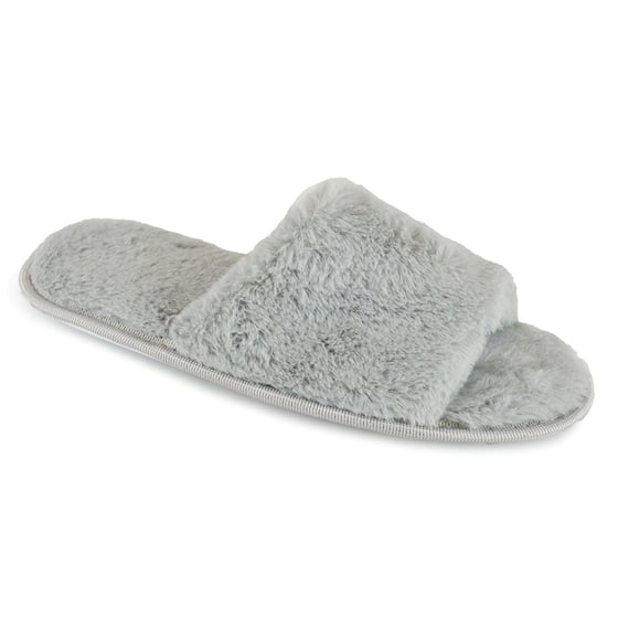 Relax in comfort with these slippers. The super soft insides provide comfort and padding so as to support your feet, and it will feel like each step you take is on a fluffy cloud. With faux fur covering every part of the slipper, your feet will be able to keep cosy whilst still staying aerated. No awkward ties mean that you can simply slide into the slippers without a second thought, and immediately be able to go about your day. The firm yet flexible base of each slipper protects you from any sharp objects accidentally on the floor and will help to aid aching feet after a long day. A wonderful grey in colour, they will fit perfectly with any clothes that you're wearing whether it is still your work outfit, or your pyjamas just before bed. These slippers are perfect for anyone wanting to walk around their home in absolute comfort.