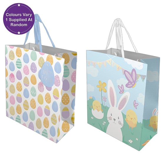 Large Easter Gift bags with Easter-themed pastel prints, crafted from durable and sturdy paper. Each bag is large in size and great for filling with a variety of gifts. Including fitting the whole family's easter eggs!