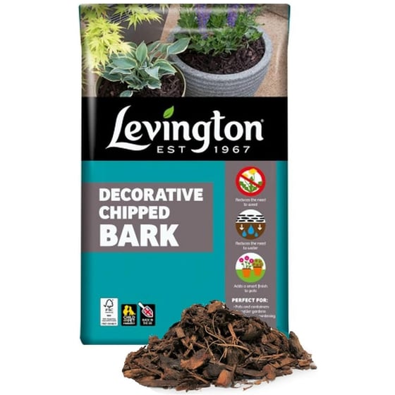 The decorative chipped bark from Levington can be used all around the garden and is ideal as a decorative top layer for pots and containers as well as window boxes and roof gardens.
