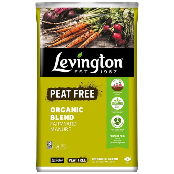Levington Organic Blend Farmyard Manure enriches soil with natural nutrients and humus, enhancing structure, boosting microbial activity, and strengthening soil instantly.