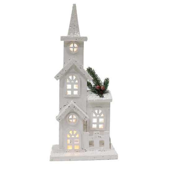 Light Up White Glitter Church 38cm