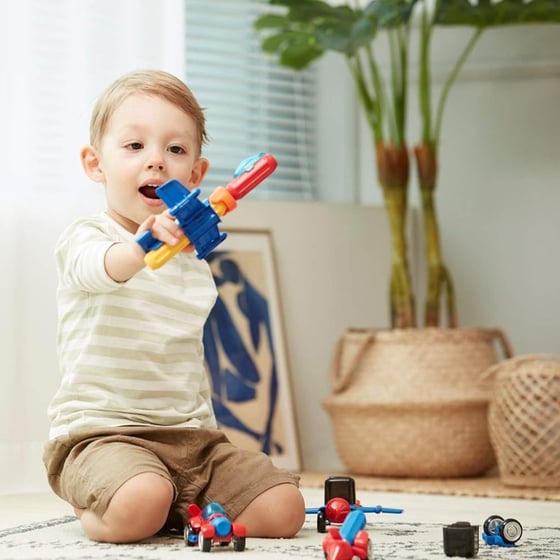 The stick-O city cars and planes set from Magformers is perfect for creative kids who love cars and planes, The lovely vehicle themed set has a combination of different magnetic shapes plus add on wings, accessories and wheels which allows for your little one to make cool cars and planes complete with supercool pull back-and-go propulsion.