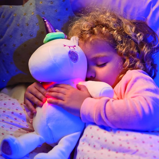 Illuminate your child's bedtime routine with the enchanting Magic Dreamlight Light-Up Plush White Unicorn. This charming plush companion combines the magical allure of a unicorn with soothing light features that create a comforting ambiance in any room. The soft, huggable white unicorn is perfect for cuddles and imaginative play during the day, while its gentle illumination transforms it into a magical night-time friend. The plush unicorn's carefully crafted design features delicate details and premium materials that are soft to touch, making it an ideal sleeping companion for little ones. Its light-up feature can help ease bedtime anxieties and create a peaceful atmosphere for sleep. Whether used as a decorative piece in a child's room or as a cherished bedtime buddy, this enchanting unicorn brings a touch of wonder and comfort to your little one's world. The perfect gift for unicorn enthusiasts and children who need a bit of magical light to guide them through the night.
