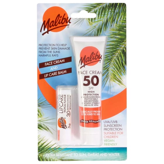 Malibu Facecream SPF50 And Lip Balm SPF 30 2 Pack