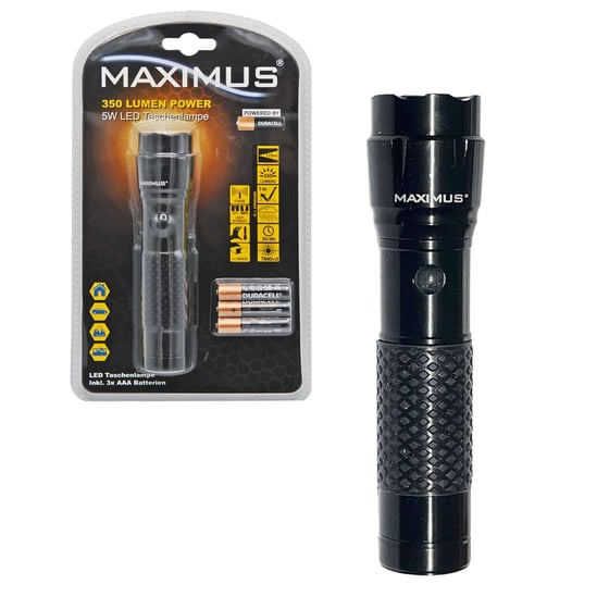 Stay Safe And Prepared With The Maximus Aluminium 5W 350 Lumen LED Flashlight. Bright, Durable And Ready For Any Situation.