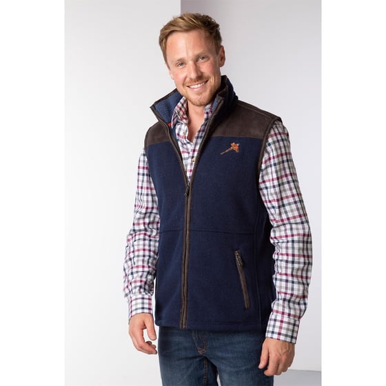 Designed with a super soft and breathable material, these fleece waistcoats have been completed with a soft suede piping along the two pockets and full-length zip, an eye-catching embroidered pheasant on the chest for a real country feel and an elasticated drawcord waist for a more refined fit. The gilet also includes an improved feature of suede shoulders for added insulation and country style.
