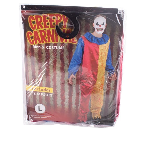 This Creepy Carnival Jumpsuit will absolutely have the Halloween guests screaming out the door when you enter, wear it as part of a clown costume, not a clown that is all fun and laughter but a clown that is a psychopathic killer that will haunt people's dreams. From a glance this costume looks bright and cheerful but in reality is frightening with the pouring realistic blood pouring down the Yellow part of the costume, you can tell that this clown has no time for fun and games. If you want to dress up as something different and sinister this Creep Carnival Costume will be right up your street.