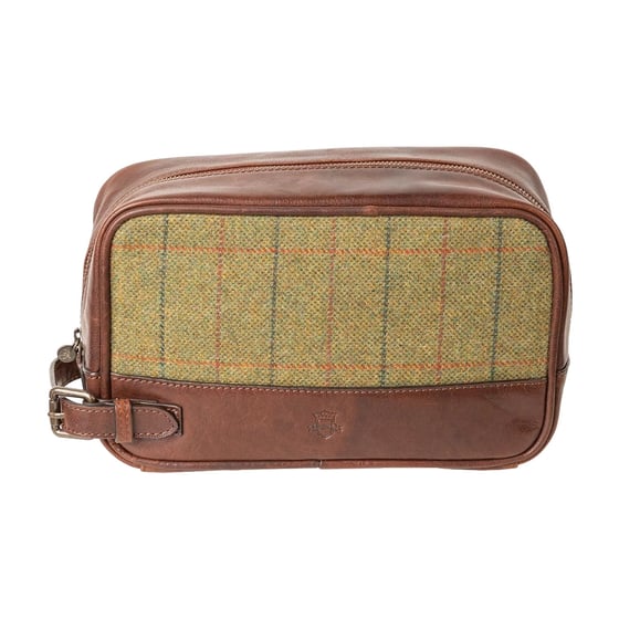 Rydale Men's Ripley Tweed and Leather Travel Toiletry Bag.