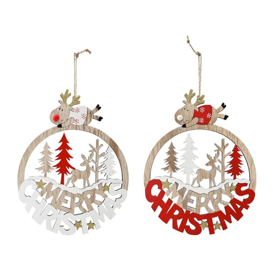 Welcome the Christmas season with this festive Merry Christmas hanging reindeer plaque. Made of high-quality material, this plaque features a charming reindeer design that will add a touch of festive cheer to any room. Its convenient hanging loop allows for easy display, making it the perfect addition to your Christmas décor. The wooden plaque features a cute Rudolph laying on the top and within the plaque is a elegant reindeer within the forest with the message of merry Christmas in big letters.