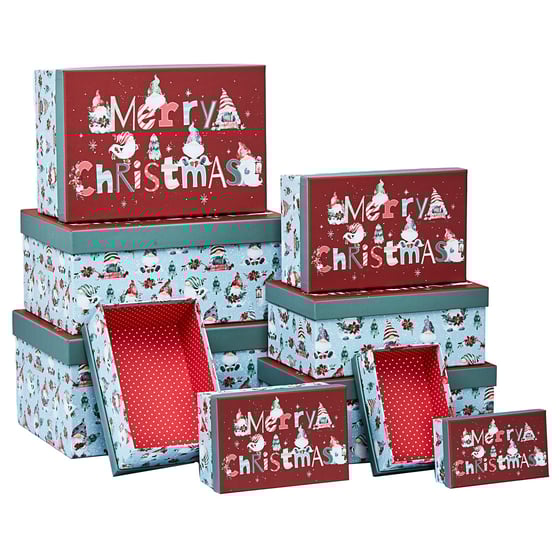 The Gift box has been made with a wonderful snowy scene featuring an array of adorable festive gonks with traditional festive decor. The red lid features the gonks wishing a Merry Christmas. Available in many different sizes, the Christmas gift boxes can be used for an array of gifts including clothes, jewellery, books and so much more. Whether you plan on gifting something small or big this holiday season, your options are endless.