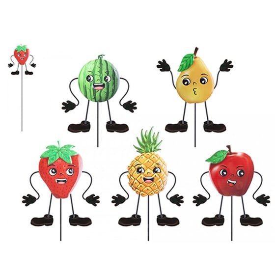 Add some humour to your garden with this metal funny fruit on a stake garden decoration.