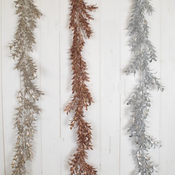 Add a touch of elegance and charm to your home with the artificial metallic boxwood garland.