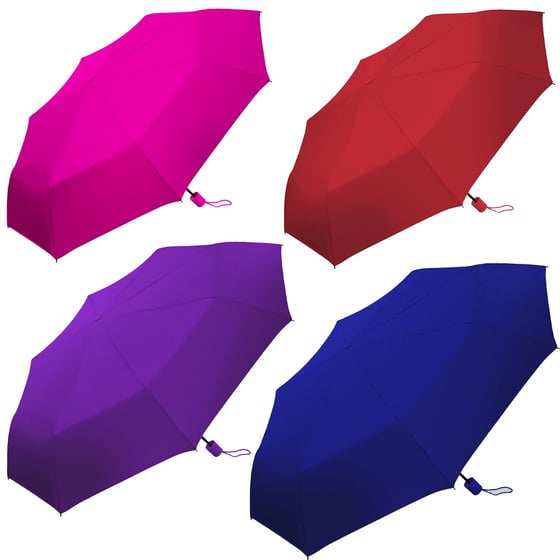 Weatherproof portable umbrellas are collapsible, small, and lightweight, making them easy to pack in your backpack, toss in your purse, or stash in the car.