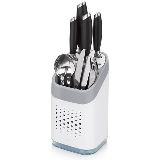 Safely store and drain your kitchen knives and cutlery with ease thanks to this modern utensil caddy from Minky.
