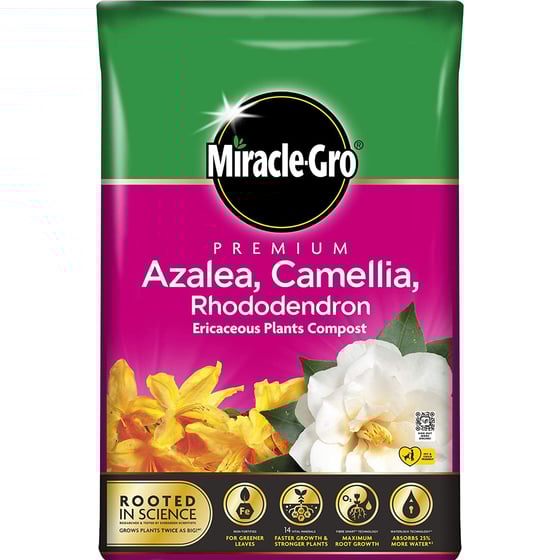 The Miracle-Gro Premium Azalea, Camellia & Rhododendron Ericaceous Compost is the perfect home for all your beautiful blossoming ericaceous plants within your garden including azaleas, camellias and rhododendrons that love acid growing conditions.