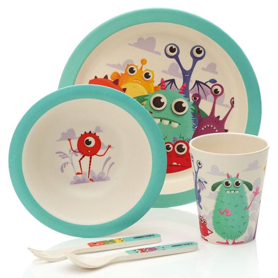 This complete children's dining set combines a cool monster design with great eco-friendly credentials.