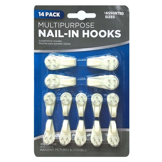 These multi purpose nail in hooks can be used to hang picture frames, utensils etc and they are suitable for concrete, cinder blocks.