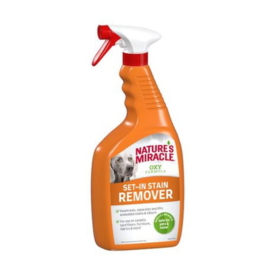 Effectively remove even the toughest stains and odours with Nature's Miracle Set-in Stain & Odour Remover for dogs. This 709ml bottle is specifically designed to target and eliminate stains and odours caused by your furry friend, leaving your home fresh and clean. A must-have for dog owners looking for a powerful and reliable cleaning solution.