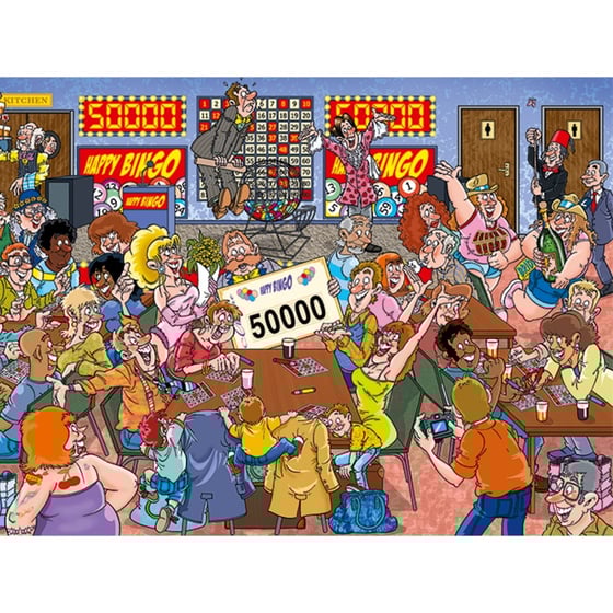 Keep your brain active and sharp with the hilarious Wasgij 1000 piece jigsaw puzzle, Bingo Blunder.