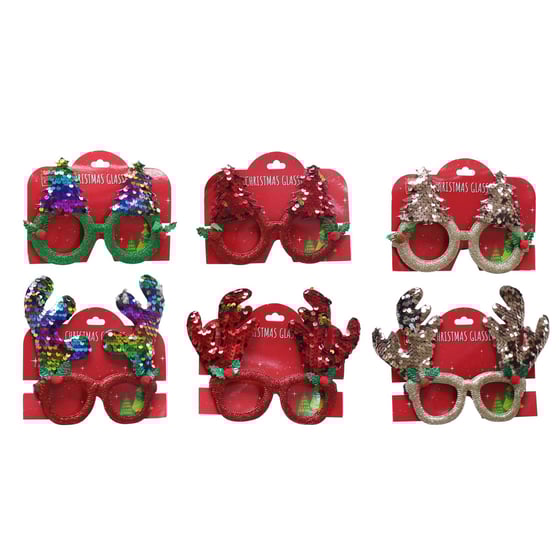Festive Magic Novelty Christmas Glasses With Sequins Assorted