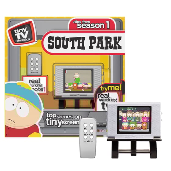 Get ready to watch south park like never before, on the tiniest tv! Introducing tiny tv classics, a collectable set from basic fun! Tiny tv classics are real-working TVs that feature the most famous scenes and quotes from top shows and movies, like South park.
