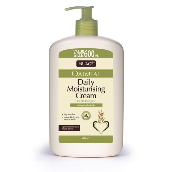 Soothe and protect dry skin with Nuage Oatmeal Daily Moisturising Cream 600ml – gentle, fragrance-free hydration for the whole family.