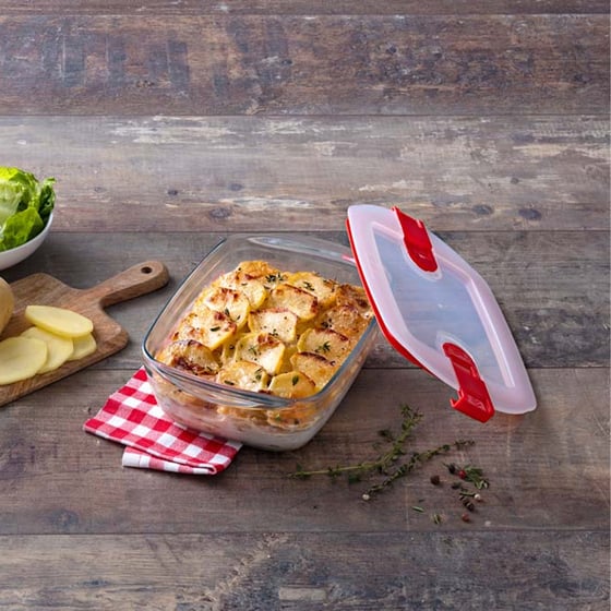 The cook & heat rectangle dish from Ôcuisine has been designed to help you cook your meals, store them away, and then re-heat your meals with ease.