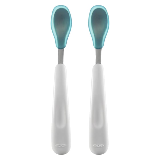 The Oxo Tot Aqua Silicone Feeding Spoon Set offers a gentle and comfortable feeding experience, with a soft, flexible tip that has a protective food-grade silicone coating which is gentle on sensitive gums and a comfortable handle for your child.