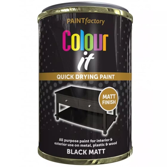The quick-drying black matt paint from Paint Factory is a tough and durable top-coat paint which can be used for both exterior and interior use.