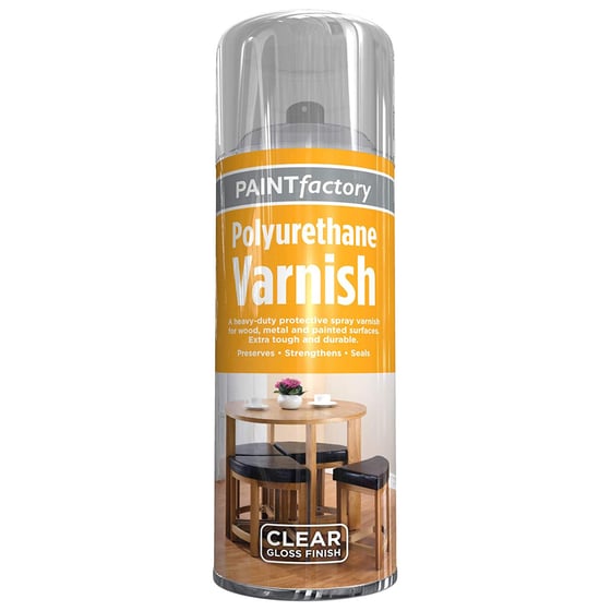 Bring a whole new lease of life to your furniture with this clear polyurethane gloss varnish spray paint from Paint Factory. The classic gloss finish is sure to help you renovate and transform your belongings in moments, with the super easy application process making decorating a breeze.