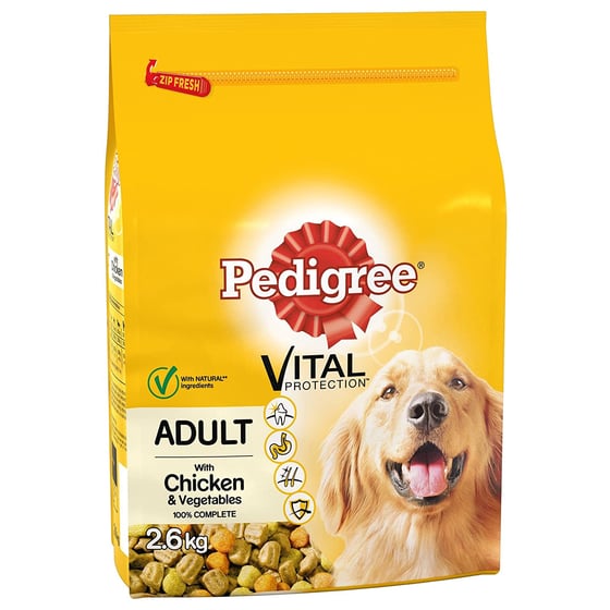 Pedigree Vital Protection is engineered to deliver a balance of nutrition that supports strong natural defenses, a healthy skin and coat, reliable, clean digestion and strong healthy teeth, forming a robust backbone for your Dog's diet, while leaving room for occasional supplements such as treats and rewards.