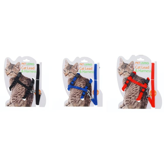 This pet living cat lead and harness set is designed for ease of use and maximum comfort. With its adjustable straps, this harness and lead set is perfect for cats of any size and ensures secure walking. For a safe and secure outdoor experience, this set is the ideal choice. This set is great for walks, vet visits etc and to maintain control of your cat. The lead length with clip is approximately 117cm and the chest harness has adjustable straps for correct fit.