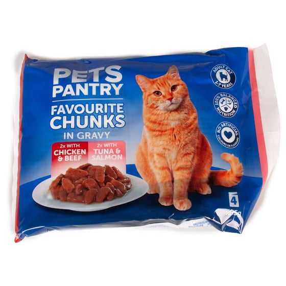 Pet's Pantry Cat Food Meaty Chunks In Gravy 4 Pack