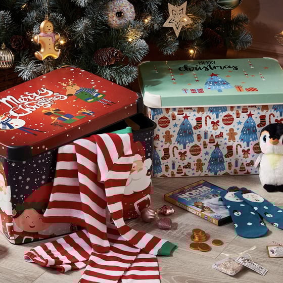 Pack these festive merry Christmas storage boxes with a variety of festive gifts for you and your children to enjoy.