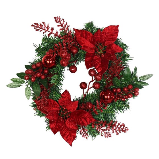 Poinsettia & Berry Wreath 35cm - Red
