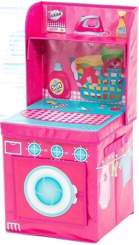 With this fun washing machine pop up box your little one can have hours of imaginative fun! It can be easily used as a storage box for toys, or folded up to store away while not being used!