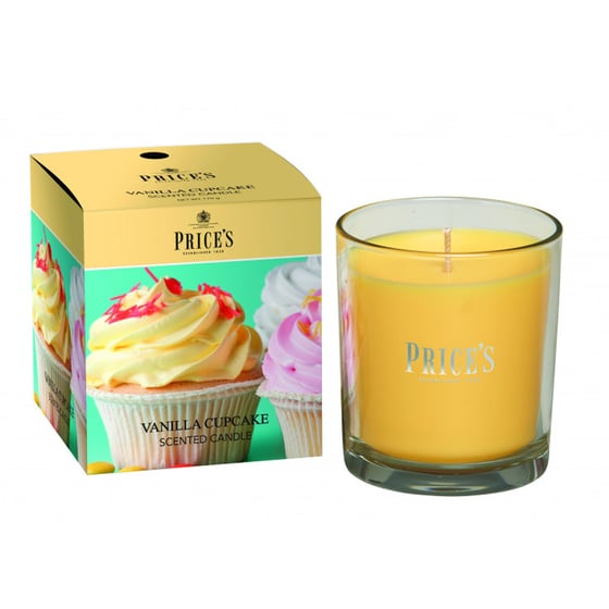 Indulge in the sweet and comforting scent of Price's boxed vanilla cupcake jar candle.