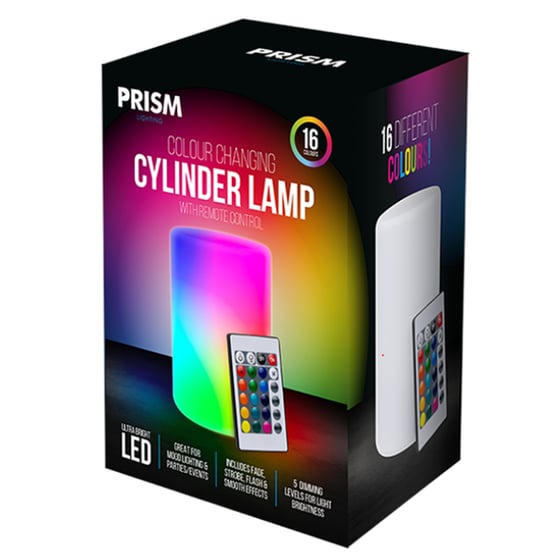 The LED multi-coloured lamp from Prism is perfect for mood lighting, parties and events.