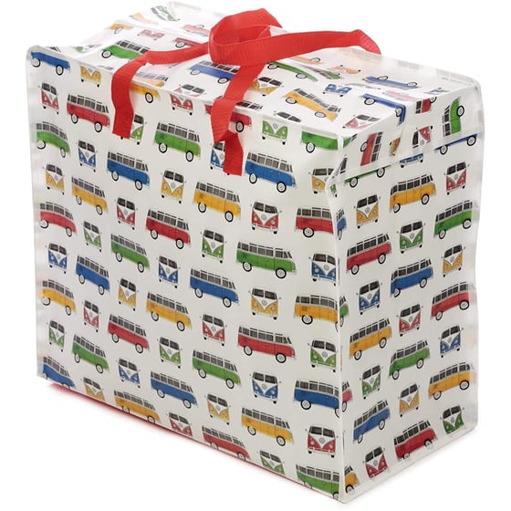 The bag is also suitable to take with you as you're food shopping or on hand in the car for storing sports kits in the boot of the car. The storage bag has a fun traditional VW Camper Van design and has been designed with woven nylon handles & metal zip fastening. When you're not using it, the bag can easily be stored and folded up away until you need it again.