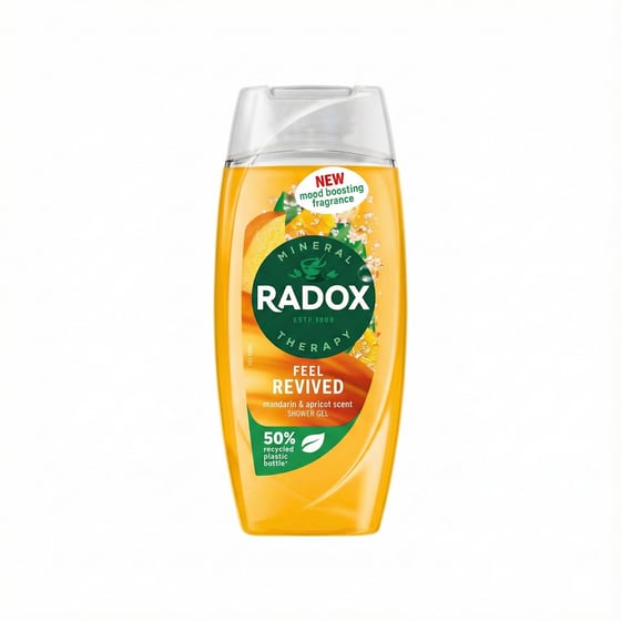 Start your day refreshed with Radox Feel Revived Shower Gel—uplifting mandarin and apricot scent for a mood-boosting shower every time.