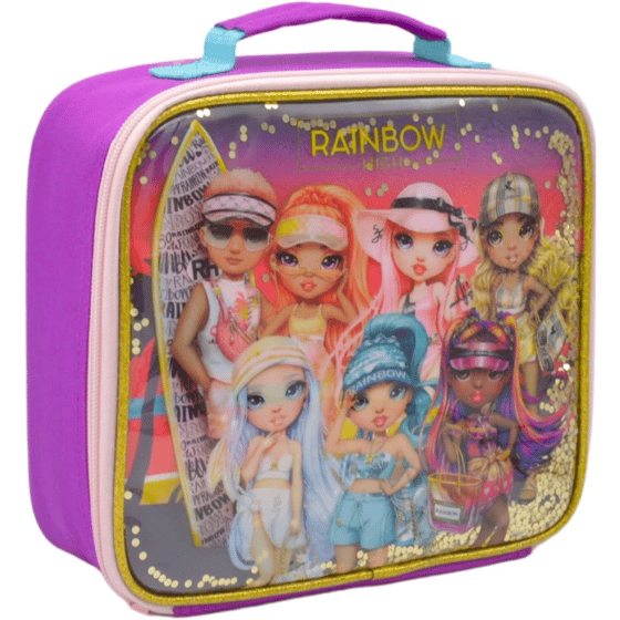 Make lunchtime sparkle with this vibrant Rainbow High Glitter Lunch Bag, combining style and functionality for fashion-forward kids.