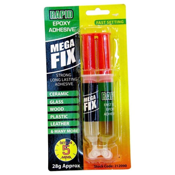 Mega Fix Rapid Epoxy Adhesive is a fast setting adhesive suitable for ceramic, glass, wood, plastic, leather and many more surfaces.