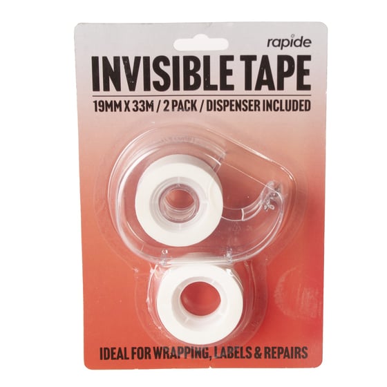 The Rapide invisible tape is a discrete multi-purpose, long-lasting tape which is ideal for wrapping, labels ( can be written once applied) and repairing documents around the home, school and office.