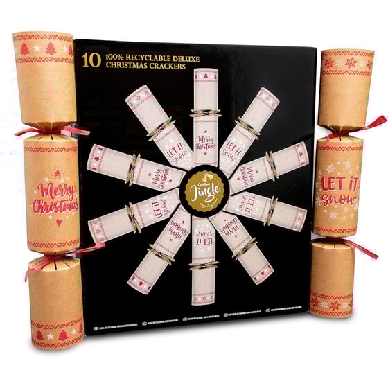 Spread joy and cheer this festive season with the deluxe Christmas crackers! These Christmas crackers feature 2 festive kraft designs with the messaging of Merry Christmas and let it snow featuring elegant festive patterns.
